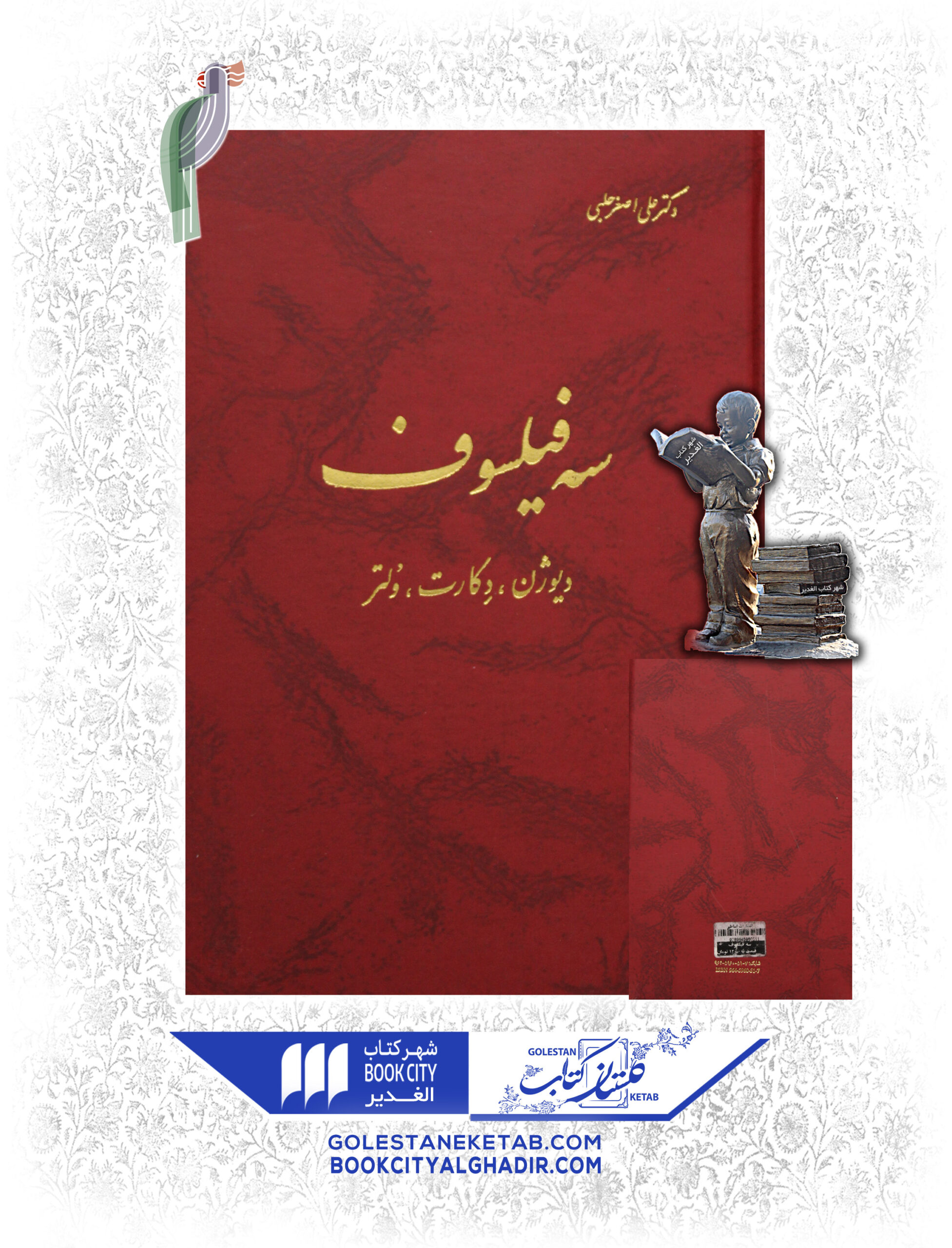 کتاب سه فیلسوف در رابطه با سه فیلسوف معاصر یعنی ولتر، دکارت و دیوژن است. نویسنده این کتاب به ببرسی مذهب کلبی و اخلاق دکارت میپردازد. دکارت در بحث اخلاق معتقد است که انسان یاید در تمام شرایط اصول اخلاقی را رعایت کند حتی اگر به ضرر او باشد. این کتاب دیدگاههای این سه فرد بزرگ را با هم مقایسه میکند.